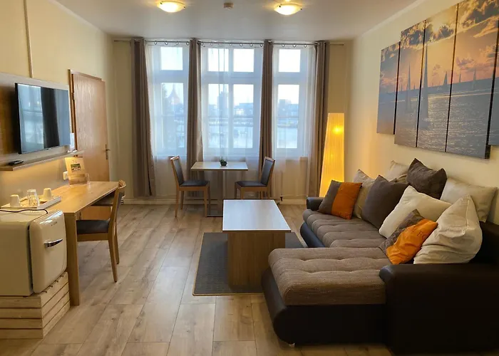 Es liegt in einer 25 Gehminuten Entfernung von der Nikolaikirche Rostock entfernt.